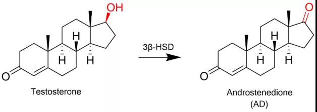 图2. 3β-HSD酶催化睾酮转化为雄烯二酮(AD)